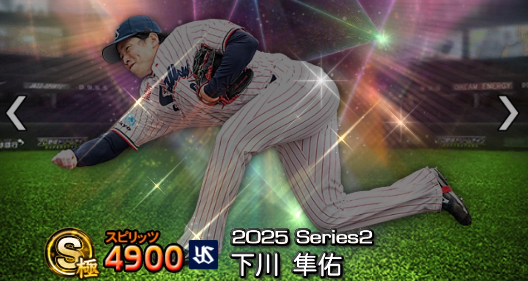 速球153km/h、球威スタミナBのスタミナ型、称号次第でALL・Bや球威制球同値が可能、先発中継ぎ可能右腕。