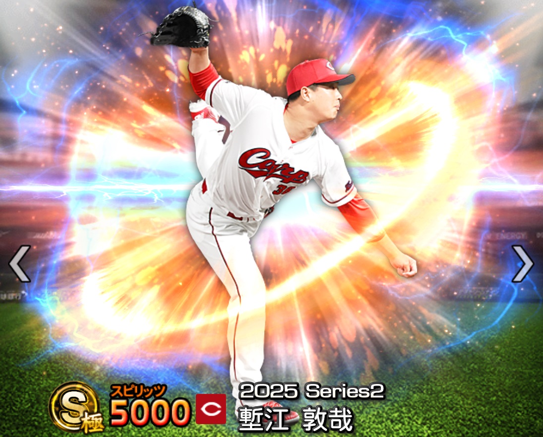 速球153km/h、球威制球Bの制球型、称号次第で制球AやALL・B、球威制球同値が可能、中継ぎ抑え可能右腕。