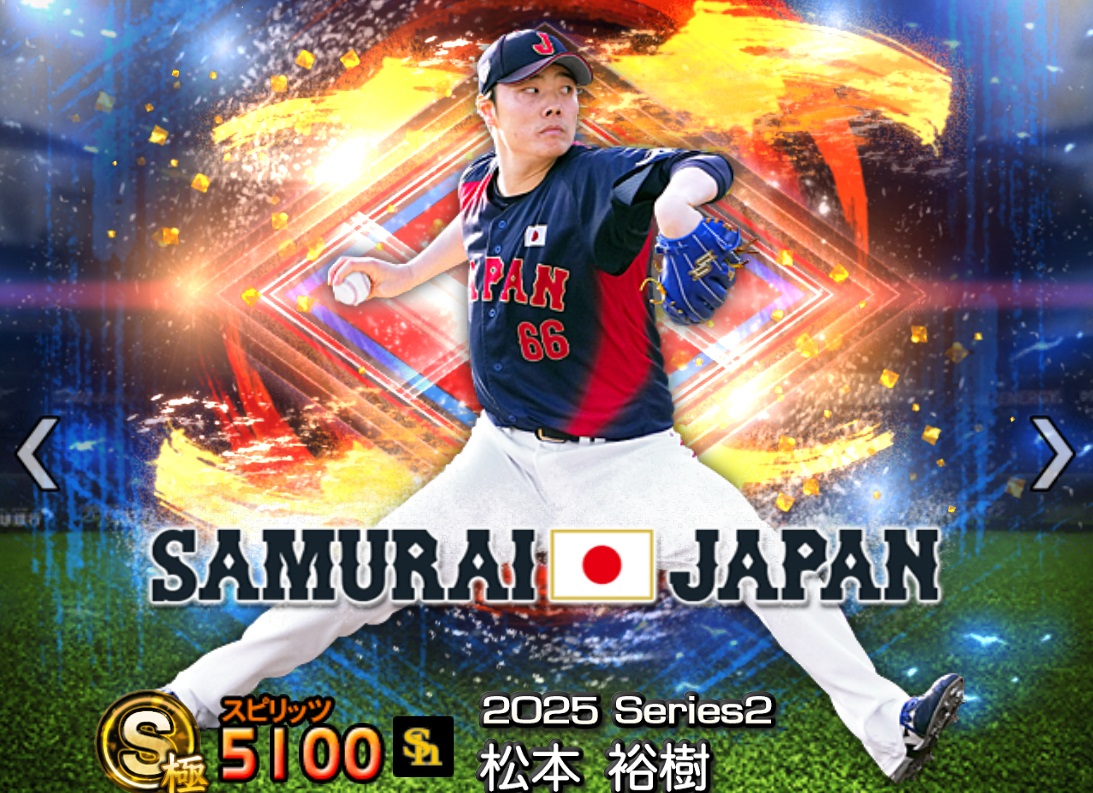 速球154km/h、制球スタミナAの制球スタミナ同値、称号次第でALL・A三点同値が可能、先発可能右腕。
